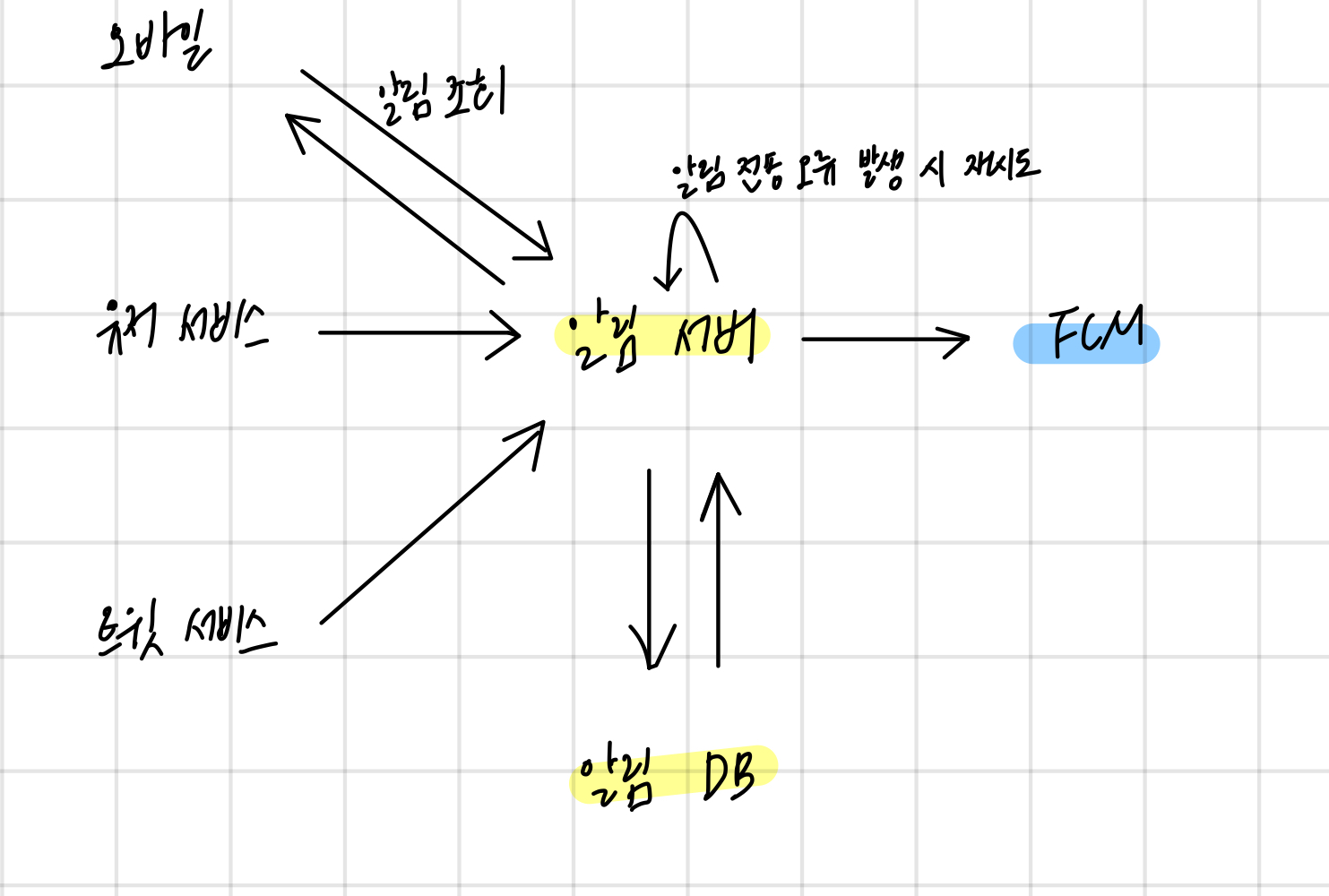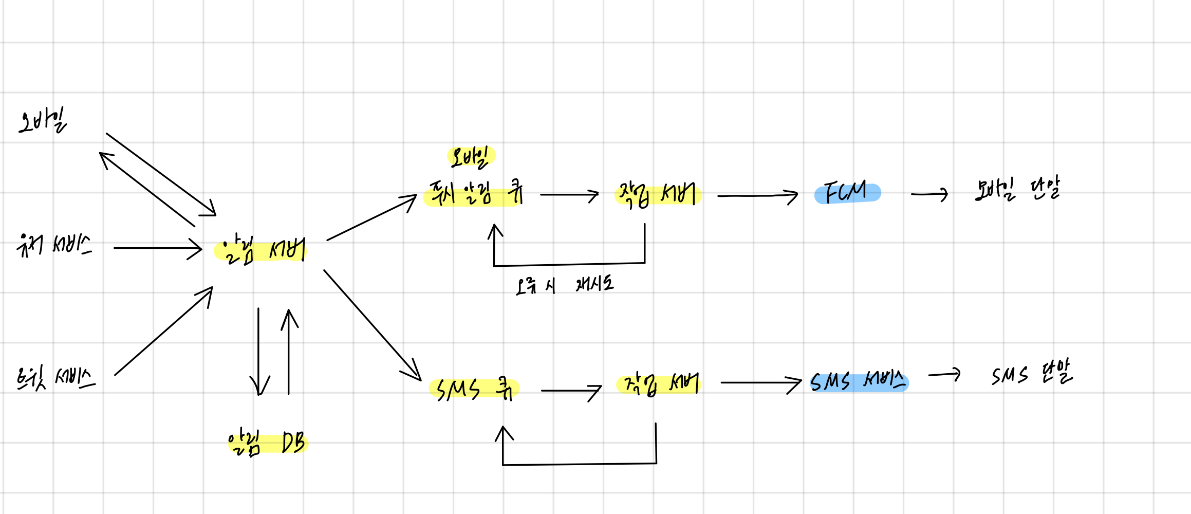 - 1대의 알림 서비스의 서버로 처리하면 해당 서버에 장애 발생 시 전체 서비스의 장애로 이어질 수 있음
