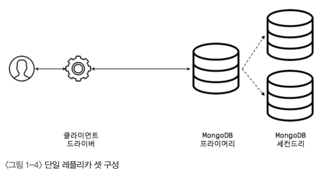 - 레플리카 셋은 특정 서버에 장애 발생 시 자동 복구를 위한 최소 단위이므로, 자동 복구가 필요하다면 항상 레플리카 셋으로 MongoDB를 배포해야 함