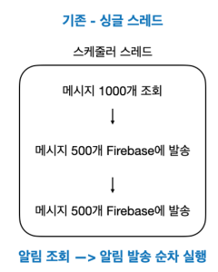- 1개의 스케줄러가 n개의 알림을 읽어와 m개의 스레드로 FCM 발송을 처리함