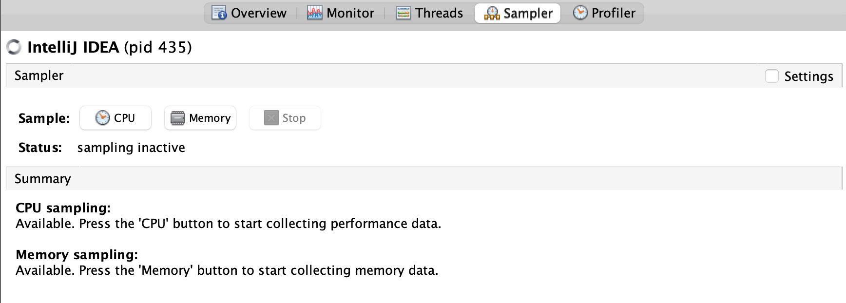 - CPU 및 메모리 사용률에 관한 단순 샘플링 결과가 표시됨