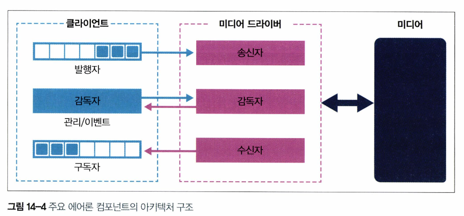- 미디어 드라이버(media driver) : 미디어와 에어론 사이의 연결 통로. 원하는 전송 구성을 세팅해 통신할 수 있음