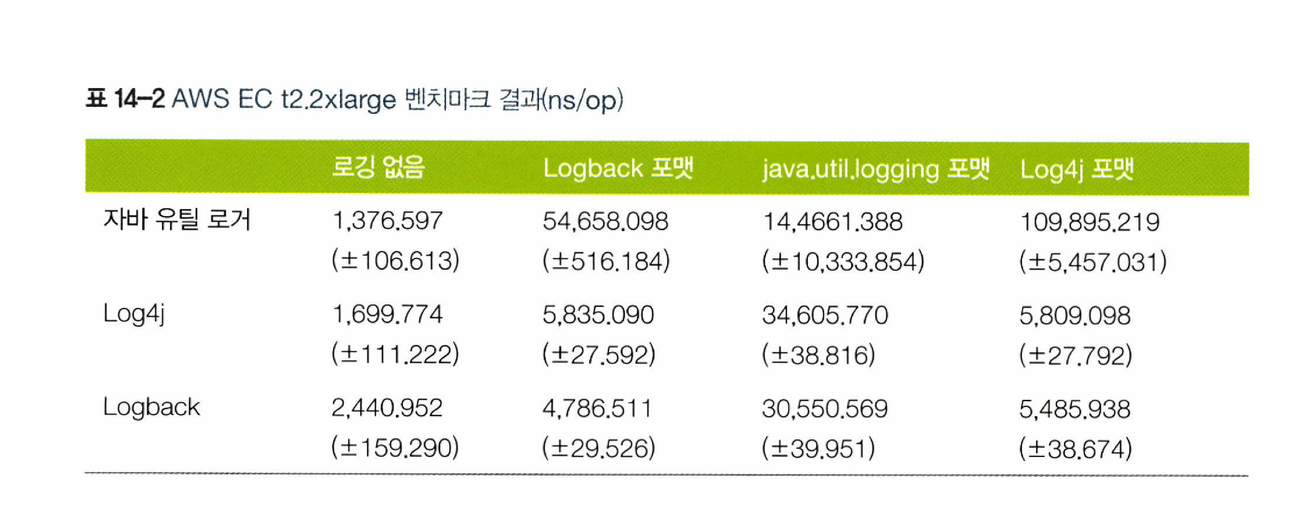 - 가장 많이 쓰는 세가지 로거(Logback, Log4j, java.util.logging)의 성능을 비교하는 벤치마크를 살펴보자