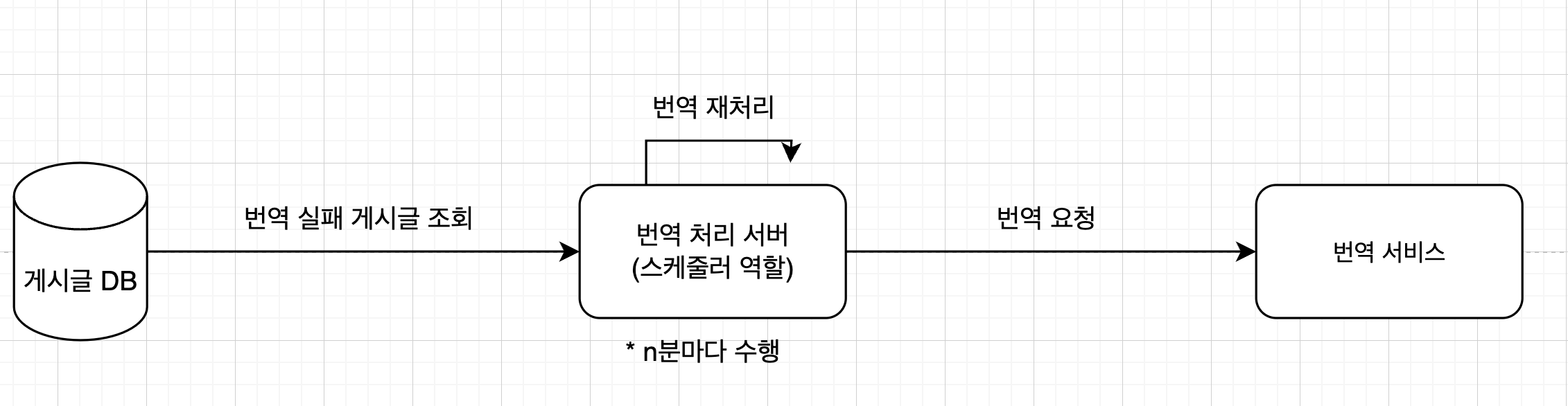- 1대의 스케줄러가 게시글을 조회하고 번역 재처리를 수행하는 구조