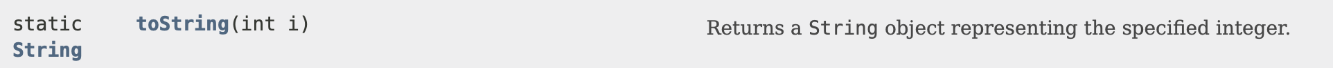 toString메서드 Integer클래스의 toString() static 메서드를 통해 정수를 String으로 변환 가능함 → Integer.toString(int i)
