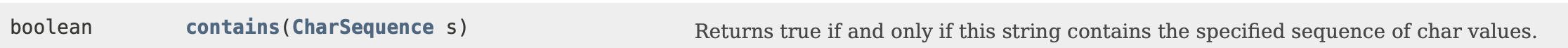 String클래스의 contains메서드 String 클래스의 contains() 인스턴스 메서드를 통해 String 객체가 인자로 주어진 문자를 포함 하는지 boolean으로 반환함