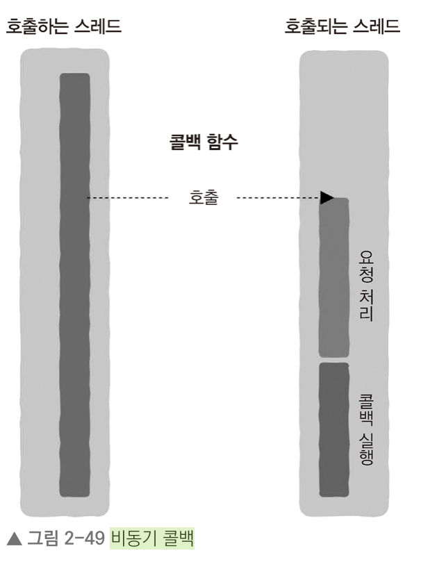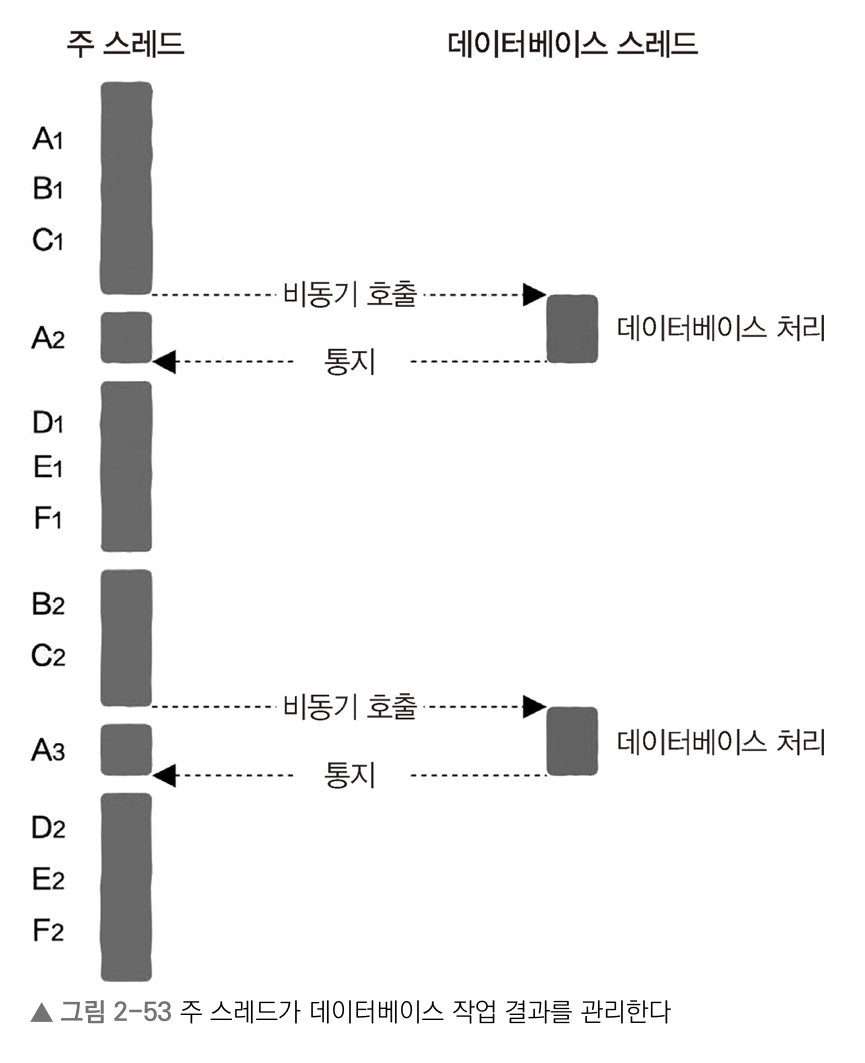 - 주 스레드가 데이터베이스 처리 요청을 보낼 때 콜백 함수를 매개변수로 전달함