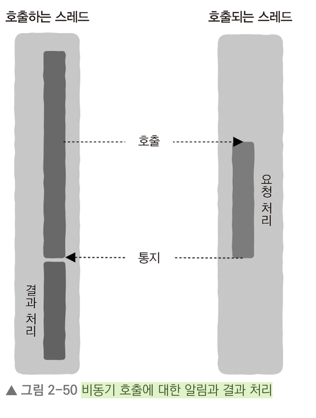 - 일부 상황(I/O 작업 포함된 경우)에서 호출자가 요청한 작업이 끝날 때까지 기다려야 하기 때문에 효율이 높지 않음