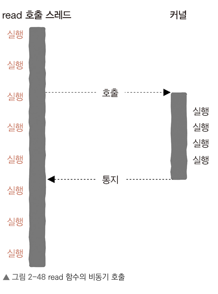 - 호출 스레드가 블로킹되지 않고 read 함수가 즉시 반환되기 때문에 호출 스레드는 즉시 다음 작업을 실행할 수 있음