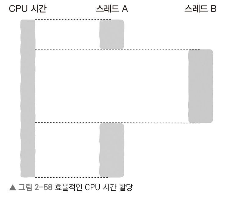 - I/O 작업 소요 시간이 CPU 작업 소요 시간보다 훨씬 오래걸리기 때문에 스레드가 I/O 작업을 할 때 CPU 제어권을 다른 스레드에 넘겨 CPU가 다른 작업을 할 수 있도록 함