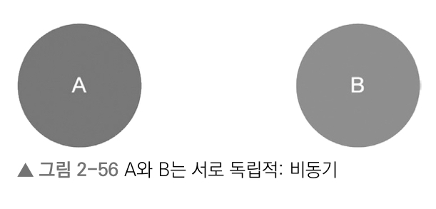 - A와 B가 강한 결합과 같은 제약 없이 각자 자신의 작업을 독립적으로 실행할 수 있는 경우 A와 B는 비동기
