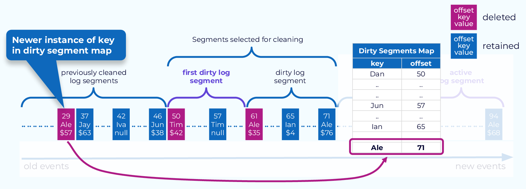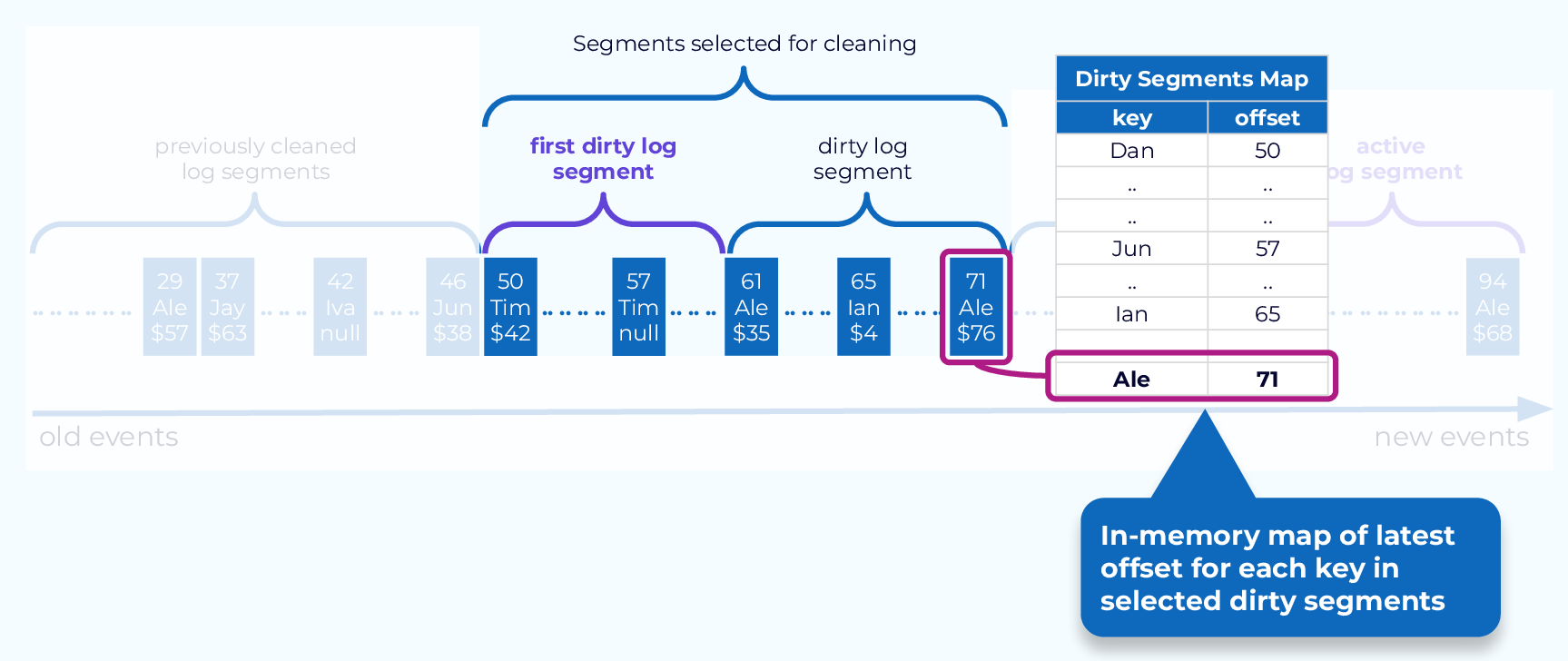 - 클린 세그먼트 내 각각의 메시지에 대해, 해당 메시지의 키값이 현재 오프셋 맵에 저장되어 있는지 확인함