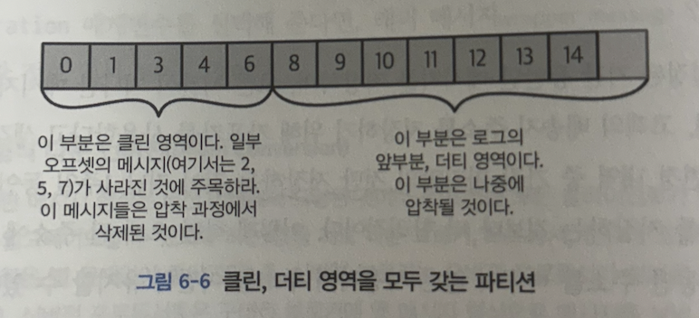 - 파티션 로그는 다음과 같이 두 영역으로 나누어짐