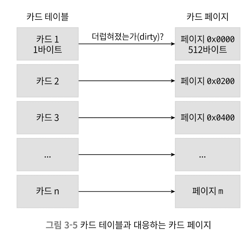 - 이 메모리 블록을 '카드 페이지'라고 함