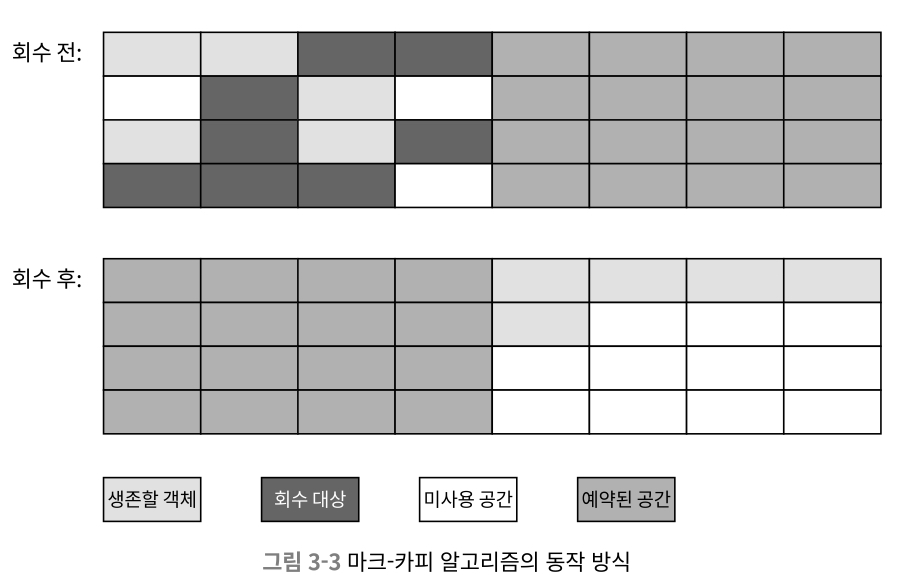 - 자바 힙에서 객체를 회수하는 방법과 유사