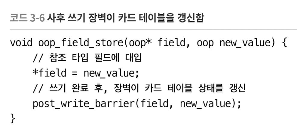 - 핫스팟 가상 머신은 쓰기 장벽 기술을 이용해 카드 테이블을 관리함