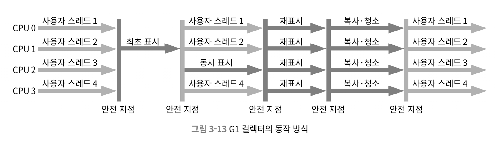 - G1을 시작으로 최신 가비지 컬렉터 대다수는 자바 힙 전체를 한 번에 청소하는 대신, 어플리케이션의 메모리 할당 속도(할당률)에 맞춰 회수하는 방향으로 변화함