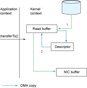 - 커널 모드에서 유저 모드로 컨텍스트 스위칭 없이, 바로 Socket Buffer로 데이터를 복사함