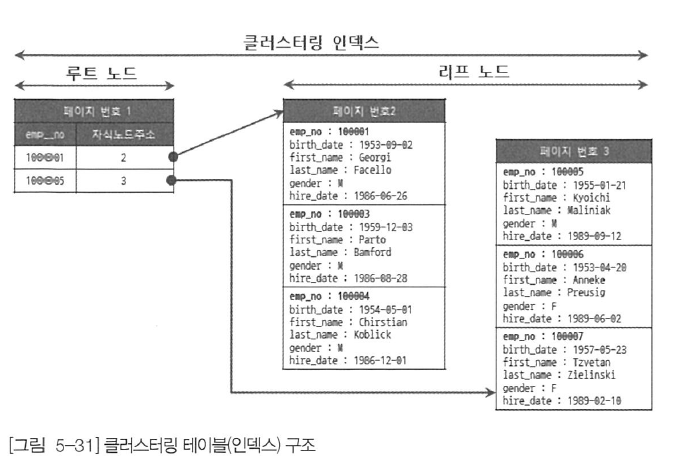 - 클러스터링 인덱스와 클러스터링 테이블은 동의어로 사용되기도 함
