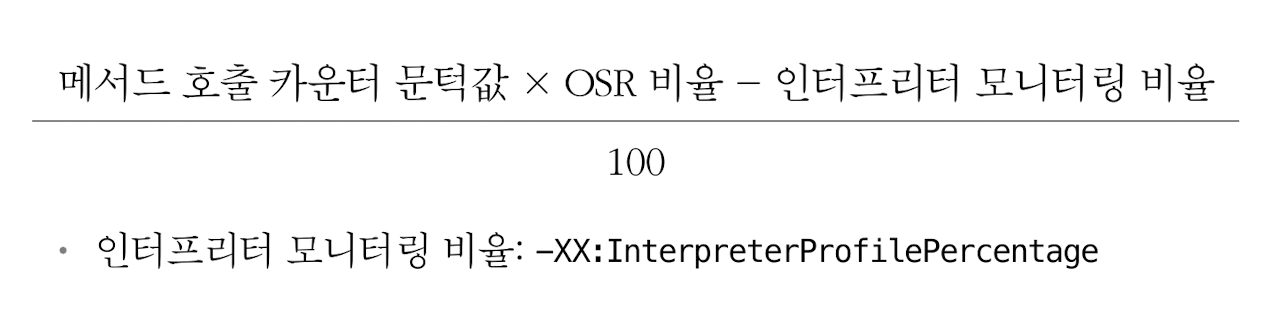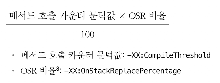 - -XX:BackEdgeThreshold 매개 변수로 문턱값을 간접적으로 조정할 수 있음