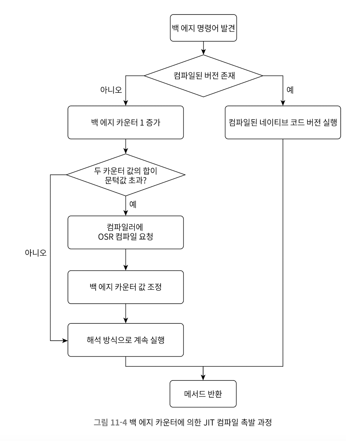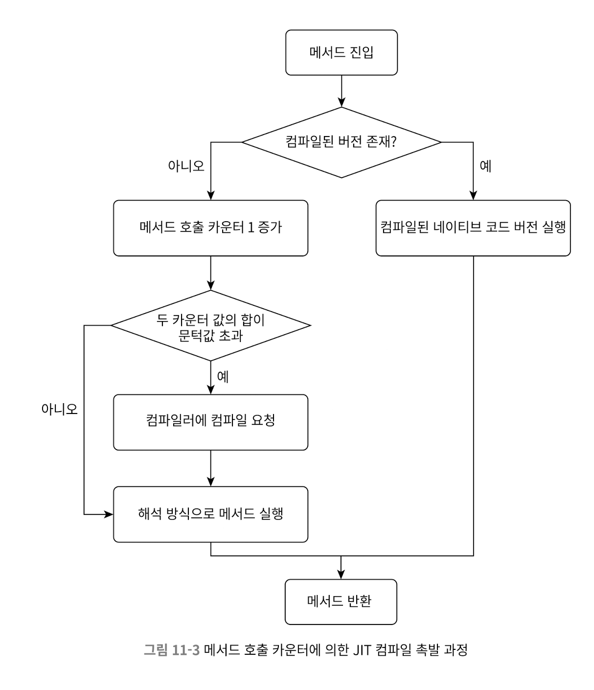 - 컴파일된 버전이 없으면, 메서드의 호출 카운터를 1 증가시킴
