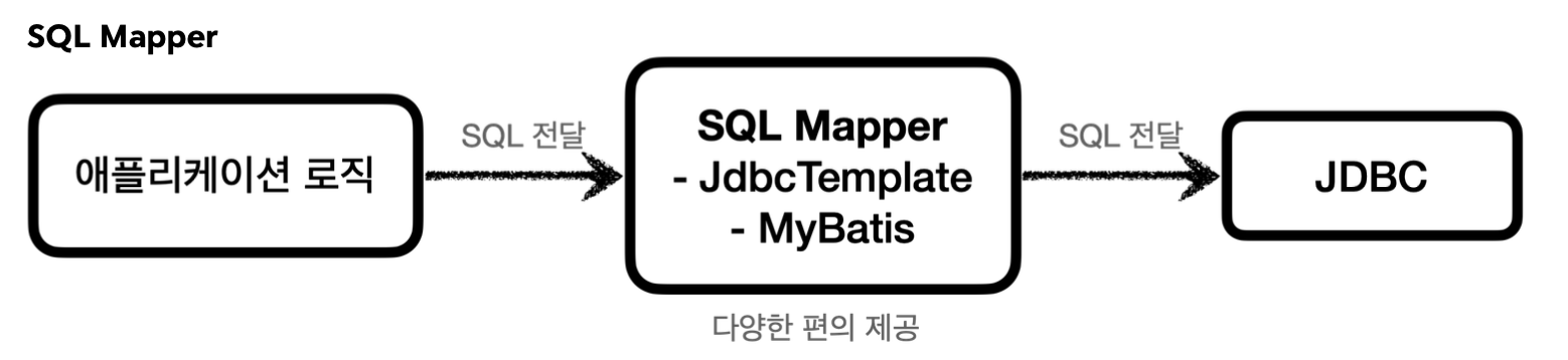 - 대표 기술 : 스프링 JdbcTemplate, MyBatis