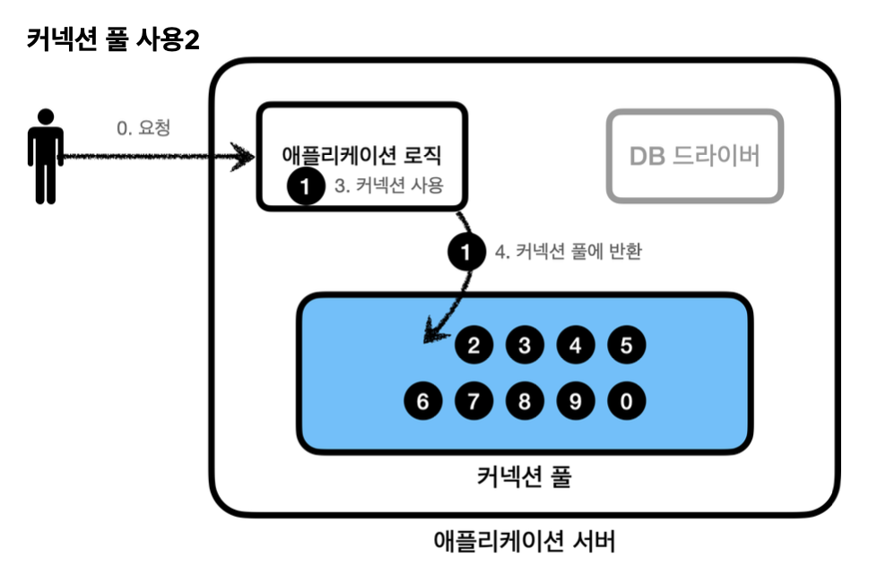 - 어플리케이션 로직에서 이제는 DB 드라이버를 통해 새로운 커넥션을 획득하는 것이 아님