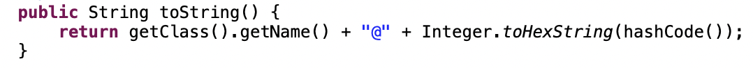 상황1) toString() 메서드를 오버라이딩 하지 않은 경우