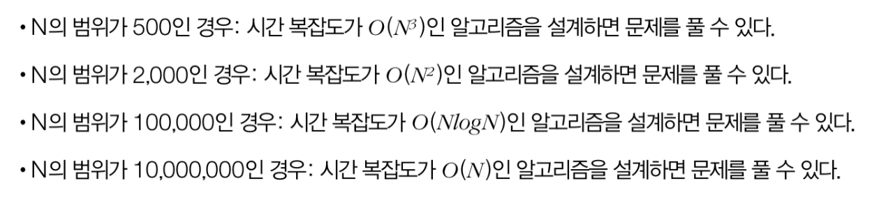 → 문제의 조건을 먼저 확인하여 문제를 풀기 위해 얼마나 효율적인 알고리즘을 작성해야 하는지 알 수 있음