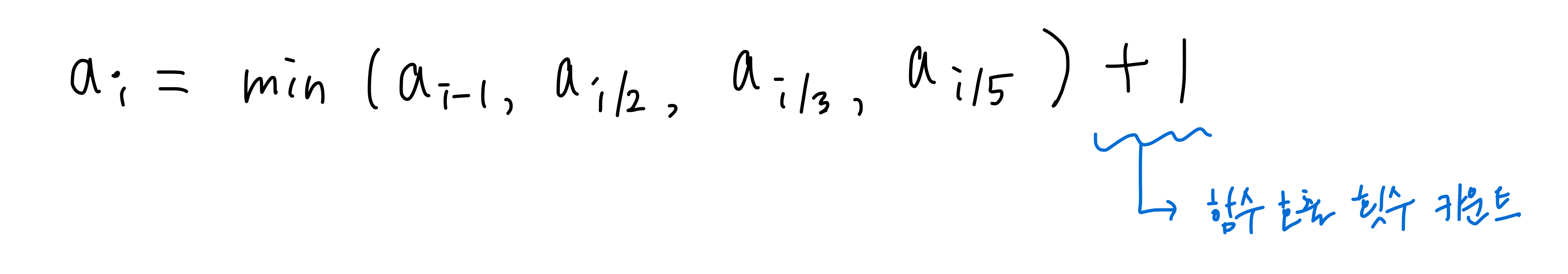 점화식 표현 → aᵢ : i 값을 1로 만들기 위해 필요한 최소 연산 횟수